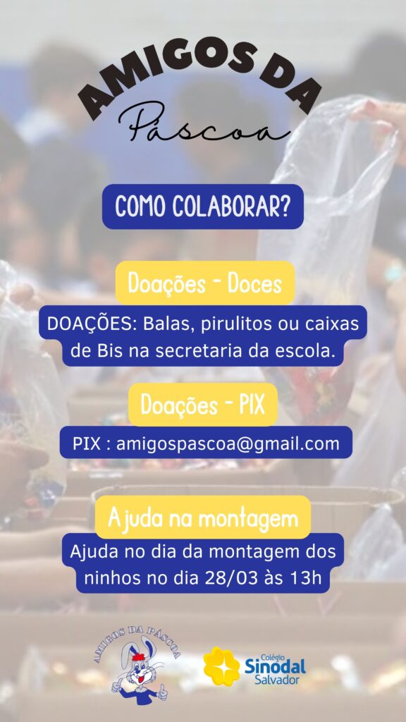 O Colégio Sinodal do Salvador tem orgulho de apoiar mais uma edição do projeto Amigos da Páscoa 💛🐰